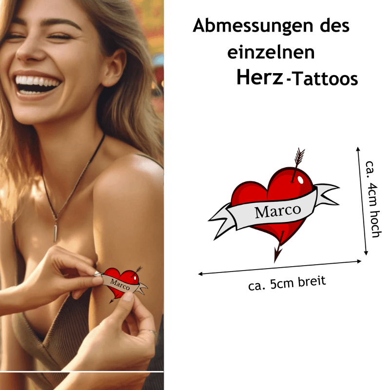 Personalisierbares temporäres Herz Tattoo mit Namen im Herz-Design – Ideal für Festivals, Hochzeiten, Veranstaltungen & Partys (Herz + Name)